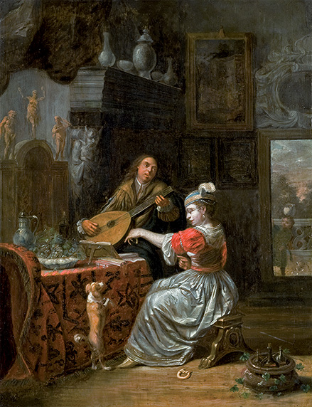 Para el mes de mayo hemos elegido esta magnífica pintura que representa un concierto en un elegante interior, realizada por el destacado pintor neerlandés del siglo XVII Hendrick Verschuring, especializado en la pintura de paisajes italianizantes y escenas de género.